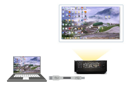 也可以用一條USB連接電腦和投影機實現USB顯示。