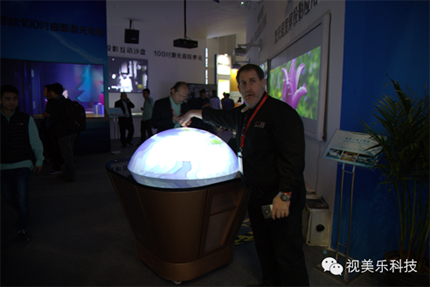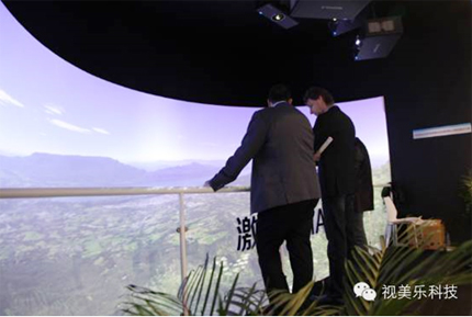 半碗形球幕顯示,觀眾站立在碗中心部位觀看,有非常高的沉浸感