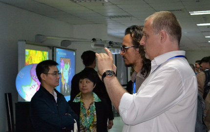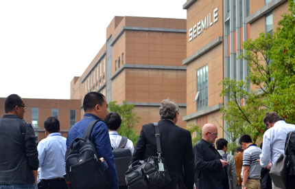 激光融合大屏、超短焦激光白板、全球首款曲面電視、球形顯示以及多款2016年全新高端工程機、類工程機、主流工程機等,整個參觀過程中,視美樂總裁陳龍先生親自陪同,并為來賓詳細介紹公司產品、技術、國內最先進的激光顯示產品生產線、公司人員架構等,現場氣氛融洽,不少大咖表示在驗證視美樂實力后對其充滿信心,期待與視美樂有后續的戰略合作,這意味著視美樂作為民族企業經過自己不斷的探索,在這國際舞臺上獲得廣泛認可。