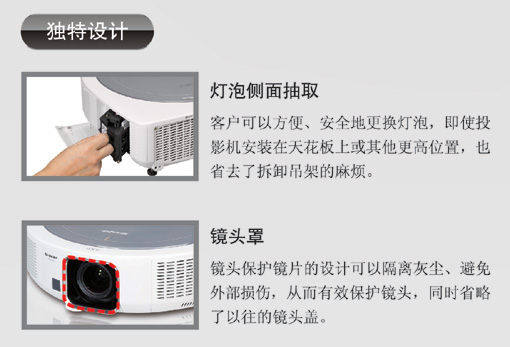 這兩款投影機新品的鏡頭具有小廣角大變焦的特性,鏡頭罩有效保護鏡頭,并支持鏡頭位移,安裝之后可以隨時方便的調(diào)整,并支持幾何校正,縮放和聚焦,旋轉(zhuǎn)。其還可以更好的展現(xiàn)高清畫面,并配備了預(yù)存儲,接口豐富,適合于展覽展示及教育等眾多行業(yè)。