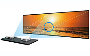 接近天花板、靠近屏幕甚至水平偏移。通過選擇鏡頭可進一步擴展投影比。 |