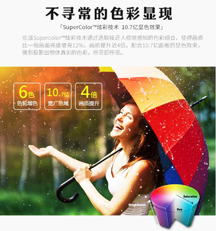 PJD7831HDL采用優(yōu)派獨(dú)家SuperColor超炫彩技術(shù),擁有出色的色輪及燈泡調(diào)整技術(shù),并展現(xiàn)更寬廣色域,都能投影true-to-life的顏色,真實(shí)呈現(xiàn)所見景物的色彩。此外,優(yōu)派PJD7831HDL還支持藍(lán)光3D功能,配合3D眼鏡便能呈現(xiàn)IMAX般的巨幕影像,還原影片效果。