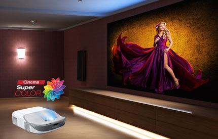 投射比僅0.223的超短焦鏡頭讓投影機的安裝更具有彈性。放在離墻面僅21公分的地方,即可投影出100吋的大視界。