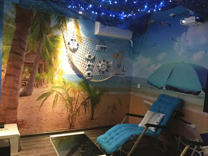 海洋情侶廳可營造出沙灘、星空等浪漫氛圍