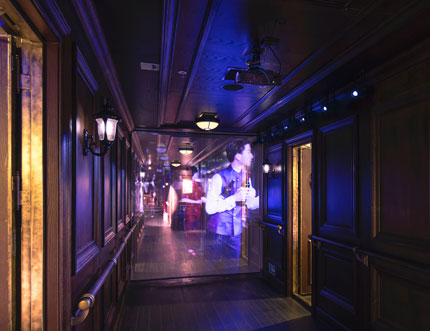 黃包車叮當作響,人們魚貫走上碼頭,還未換取一張老船票、登上這艘老輪船,演出就已經開始了。200余米的碼頭上,穿梭賣報的小童、賣力吆喝的小販、提皮箱戴禮帽的紳士、匆忙趕路的旗袍淑女,一瞬間好似穿越回百年以前。踏上甲板,你既是船客也是局中人。整艘船都是戲劇上演的舞臺,三層各具特色的船體空間,燈火通明的主甲板餐廳,浮沉晃動的近百間客房……不必在觀眾席上正襟危坐,因為船上的每個角落都是故事發生的地方。你可以踏進客房艙門,選擇一件自己喜歡的服飾替換上身,在吧臺小酌,在甲板遠眺,盡情享受打破一切常規的戲劇演出。是的,這就是《知音號》中的場景。