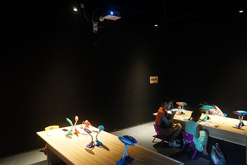 兒童光影繪畫館,一個頗具趣味性和創造性的親子互動空間。孩子們可以繪畫,作品還可以投放到星空為背景的巨幕上。BenQ工程投影機SU765在這里投影大畫面,靜謐的空間激發孩子的想象力與創意。