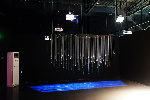 梵高描繪的荷塘亦如星空一樣璀璨,在獨特的鏡子房間中,空間無限延展,投影畫面位于屋頂,經由四面墻壁與地板的鏡面反射,我們仿佛置身湖水中央。兩臺BenQ短焦投影機吊頂安裝,垂直將畫面呈現在背投屏幕上,觀眾們不見光線而被影像所環繞。
