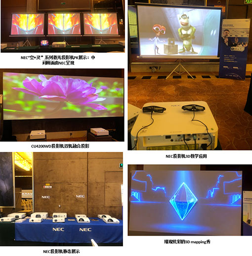NEC教育投影機多種應(yīng)用方案展示,向與會觀眾最大化地展現(xiàn)了NEC不同系列投影機的產(chǎn)品優(yōu)勢,成為了此次推廣會上的最大亮點。其中NEC全新“空•靈”系列激光投影機的PK展示,CU4200WD的多臺融合展示等激起了觀眾熱烈討論。
