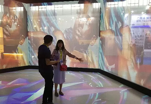 據了解,該展項由9臺松下激光機投影打造,每一面紗幕寬4米,高3.5米,并由一臺31,000流明的松下激光光源工程投影機PT-SRS30KC進行投射,地幕畫面直徑8米,由4臺12,600流明的松下激光光源工程投影機PT-FRZ120C融合投射。